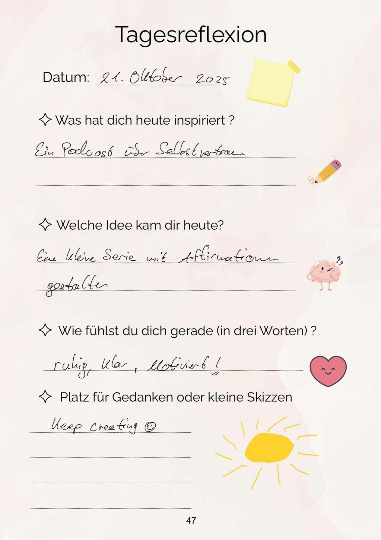 • Tägliche Reflexionsseiten – für Inspiration, Gefühle & neue Ideen